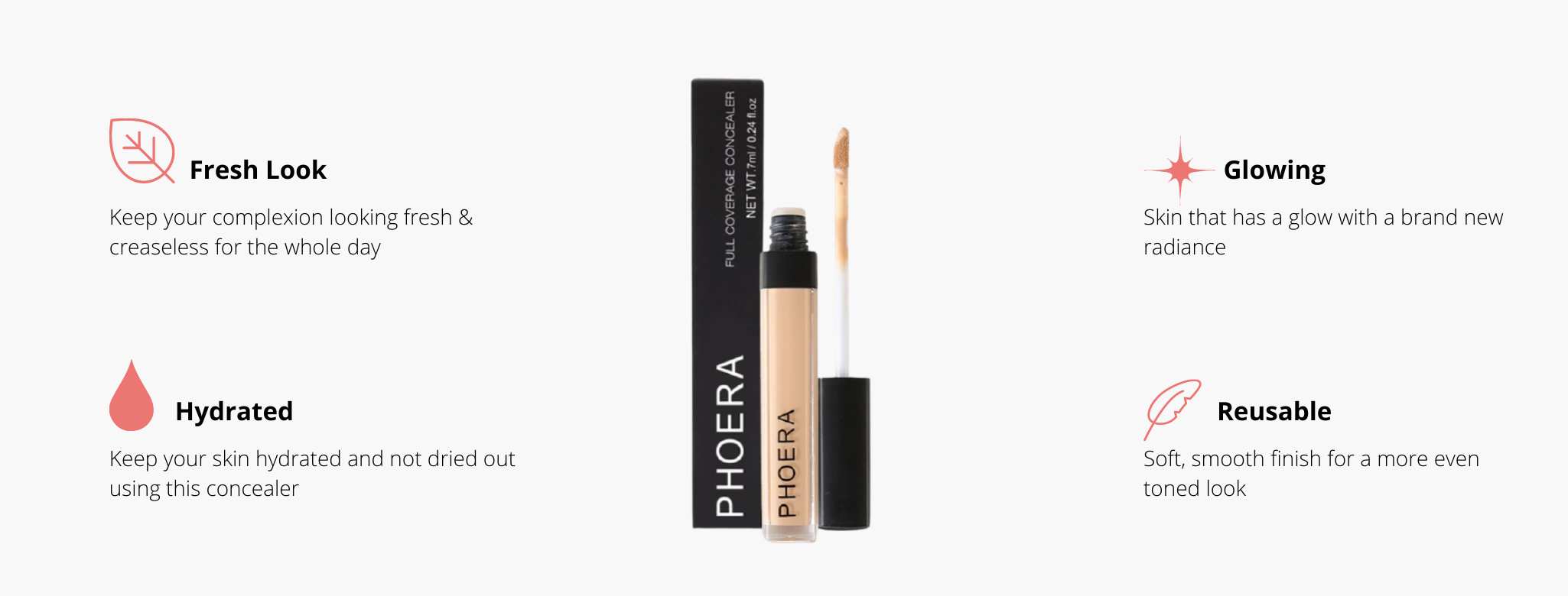 Say goodbye to blemishes, spots, imperfections, and dark circles. PHOERA's long-lasting concealer will hide it all. Your skin becomes visibly smooth, soft, and more even-toned. Keep your skin looking flawless. The long-wearing concealer, available in an all-inclusive range of 10 shades, gives a luminous finish that looks just like your skin so you don't have to worry about not looking your best.