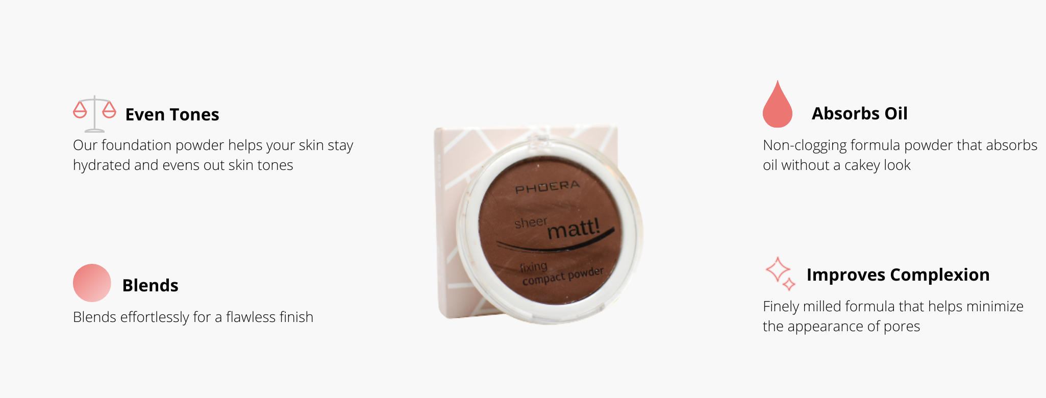 Setting powders beware, you have met your match with PHOERA's new weightless loose powder. Create a smooth, lightweight look and lock in your look that sets makeup in place for an all-day look without creasing, caking or flaskbacks. Our loose powder was developed with ultra-fine smooth powders to provide a long wearing, soft focus matte finish without feeling heavy or looking cakey.